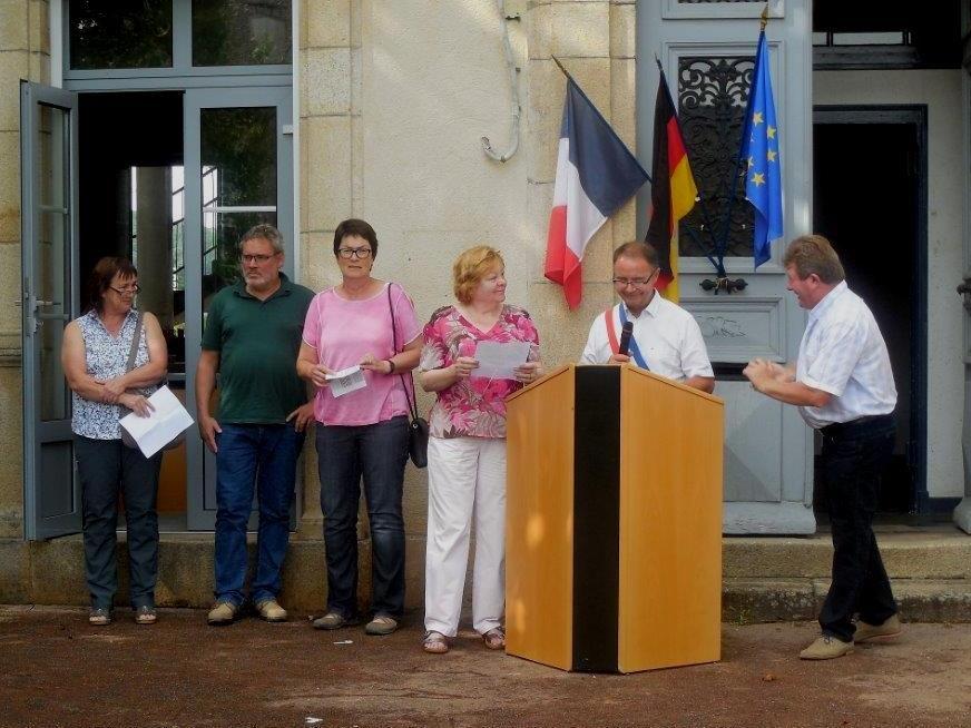Mitternacht war schon vorüber und bis zur Rückfahrt nach Bad König blieben nur noch wenige Stunden, als Ellen Nisch, Vorsitzende des Partnerschaftskomitees von Bad König die trotz der späten (oder frühen) Stunde noch in großer Zahl in der Mehrzweckhalle von Argentat versammelten deutschen und französische Freunde der Jumelage Bad König / Argentat zur Übernahme von Verantwortung für das „krisengeschüttelte Europa“ aufrief, auf dass ein vereinigtes Europa eine Chance haben möge. Ellen Nischs französische Kollegin Nicole Farges stärkte ihr sogleich den Rücken: In Krisenzeiten gehöre Solidarität zur Partnerschaft, und nur durch gemeinsame Anstrengungen bewährten sich die von allen geteilten demokratischen Grundwerte. Worte, mit denen die beiden Damen am Ende eines denkwürdigen Besuches deutscher Gäste in Argentat die Ereignisse der vorangegangenen vier Tage noch einmal Revue passieren ließen, Tage, angefüllt mit interessanten Informationen und freundschaftlichen, ja: herzlichen Begegnungen zwischen den Bad Königer Besuchern und ihren französischen Gastgebern, aber eben auch Tage, an denen am Horizont aufgezogene dunkle Wolken Deutsche wie Franzosen daran erinnerten, dass deutsch-französische Freundschaft sich nicht auf „Friede, Freude, Eierkuchen“ beschränken kann.