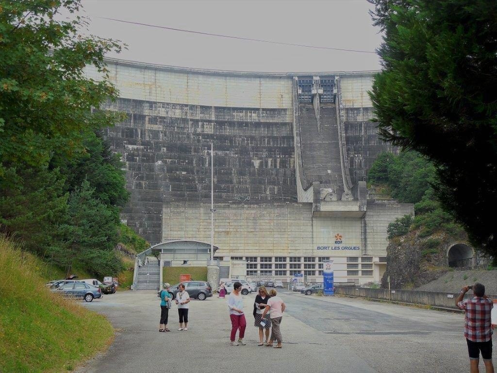 Trotz des ernsten und durch Stichworte wie „Nizza“ und „Charlie Hebdo“ gekennzeichneten Hintergrundes diente der Besuch der Bad Königer Delegation natürlich auch der Information. Aufbauend auf früheren Treffen in Bad König und Argentat stellten die französischen Gastgeber am zweiten Besuchstag die im Tal der Dordogne besonders wichtigen Einrichtungen zur Energiegewinnung durch Wasserkraft vor. Zu diesem Zweck suchten Gastgeber und Gäste gemeinsam das am Oberlauf der Dordogne gelegene Wasserkraftwerk in Bort-les-Orgues auf. Als viertgrößtes Wasserkraftwerk Frankreichs wird hier im Laufe des Jahres Strom erzeugt, mit dem eine Stadt von 128.000 Einwohnern versorgt werden kann. Eingebettet in die Landschaften der Corrèze, des Cantal und des Puy-de-Dome, nutzt die Anlage das Wasser der Dordogne und sammelt es in einem 21 Kilometer langen Stausee. Dem Besucher bietet sich nicht nur der Anblick einer 120 Meter hohen Staumauer; in einem Informationszentrum kann er sich über die Baugeschichte des 1942 begonnen und 1952 fertiggestellten Bauwerks, über technische Details der Energiegewinnung aus Wasser und über Sicherheitsvorkehrungen unterrichten. Die Besucher aus Bad König, die von einer Mitarbeiterin der das Werk betreibenden EDF durch die Anlage und das Informationszentrum geführt wurden, machten von dieser Möglichkeit regen Gebrauch. Deutlich wurde auch, dass die nachhaltig in die Landschaft der Dordogne eingreifende Entstehung eines Stausees von beachtlicher Größe auch Chancen für neue Erwerbszweige bietet. So zeigte der Besuch des heute auf einer über einen Damm zu erreichenden Insel gelegene Chateau de Val die Möglichkeit einer touristische Nutzung der künstlich entstandenen Landschaft auf; als Ausgangspunkt für Bootsfahrten auf dem Stausee und für Wanderungen sowie als ein die am Ende des 100jährigen Krieges entstandenen Baulichkeiten präsentierendes Museum und Ausstellungsort hilft das Schloss, Touristen in diese Gegend Frankreichs zu ziehen und trägt so zur Förderung des Tourismus bei. Veraltete Wirtschaftszweige können so ersetzt werden, was insbesondere beim Besuch des Ledermuseums von Bort-les-Orgues deutlich wurde, in dem, angesiedelt in einer aufgelassenen Fabrik, die Produktion von Leder Schritt für Schritt an den noch in der zweiten Hälfte des vergangenen Jahrhunderts genutzten Maschinen nachvollzogen werden kann. Auch wenn die Staumauer von in Bad König neuerdings nicht ganz unbekannten Mauerseglern und der kleinen Hufeisenfledermaus besiedelt ist, lässt sich allerdings nicht verleugnen, dass der Bau solcher Stauwerke einen schwerwiegenden Eingriff in die Natur darstellt; Lachse, die früher bis zum Oberlauf der Dordogne aufstiegen, findet man hier nun nicht mehr.